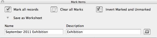 to the left of Save as Worksheet to display the blank Worksheet Name and Description fields.All records must be Marked in order to create a Worksheet. If you started with a View Set, click the Mark all records first, then continue with the next step.
