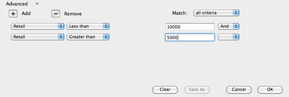 - Click the Add button under 'Advanced' to add a new criteria line item