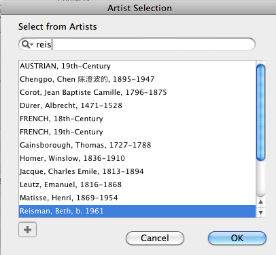 - Click Yes and the Artist Selection List will appear. Use the Search field to start typing the Artist's last name and the selection will be highlighted when found.