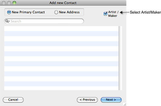 - Since the Add New Contacts Wizard began this process, the Add Artist to Contacts box is automatically checked. Simply click Next and continue to add the new Contact record.