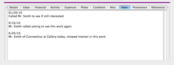 The Works Note Screen is a large Note field to document any information about the artwork (this field is limited to 8000 characters).