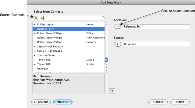 - Location: When the desired Location Contact record is shown in the list and highlighted, click the Arrow