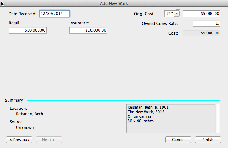 - Enter the Original Cost Currency and Purchase Cost. All Cost calculations display in the workstation's Home Currency (that is, the same Currency which is set in the computer's Regions & Languages). Below is an example of a Work entered where the work was purchased in a non-home currency. Conversion Rates are saved in the database and users can get the most up to date conversion rates when needed. To update a currency’s conversion rate, simply right-click (or select [Command] + [Click] on the keyboard) on the Conversion Rate field and click any of the selections: